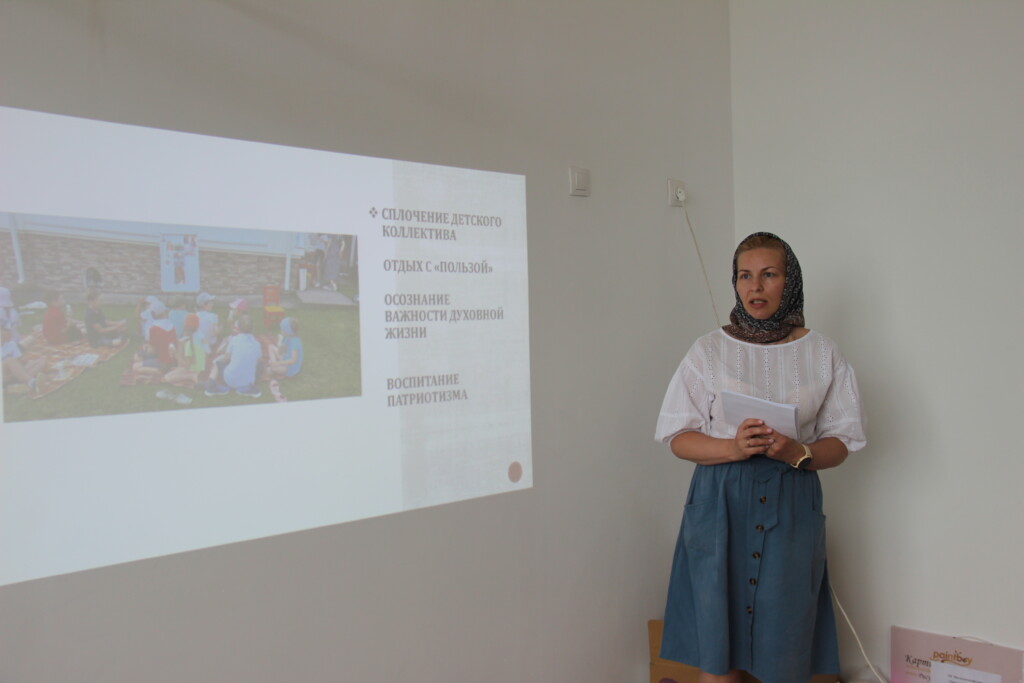 Анна Александровна Машковцева, руководитель воскресной школы храма в честь Владимирской иконы Божией Матери поселка Протасы рассказала о планировании летних просветительских и досуговых мероприятий для детей и подростков. В заключении работы педагогического совета руководители воскресных школ, участников конкурса короткометражных фильмов «За Веру и Отечество!» были награждены дипломами и книгами.
